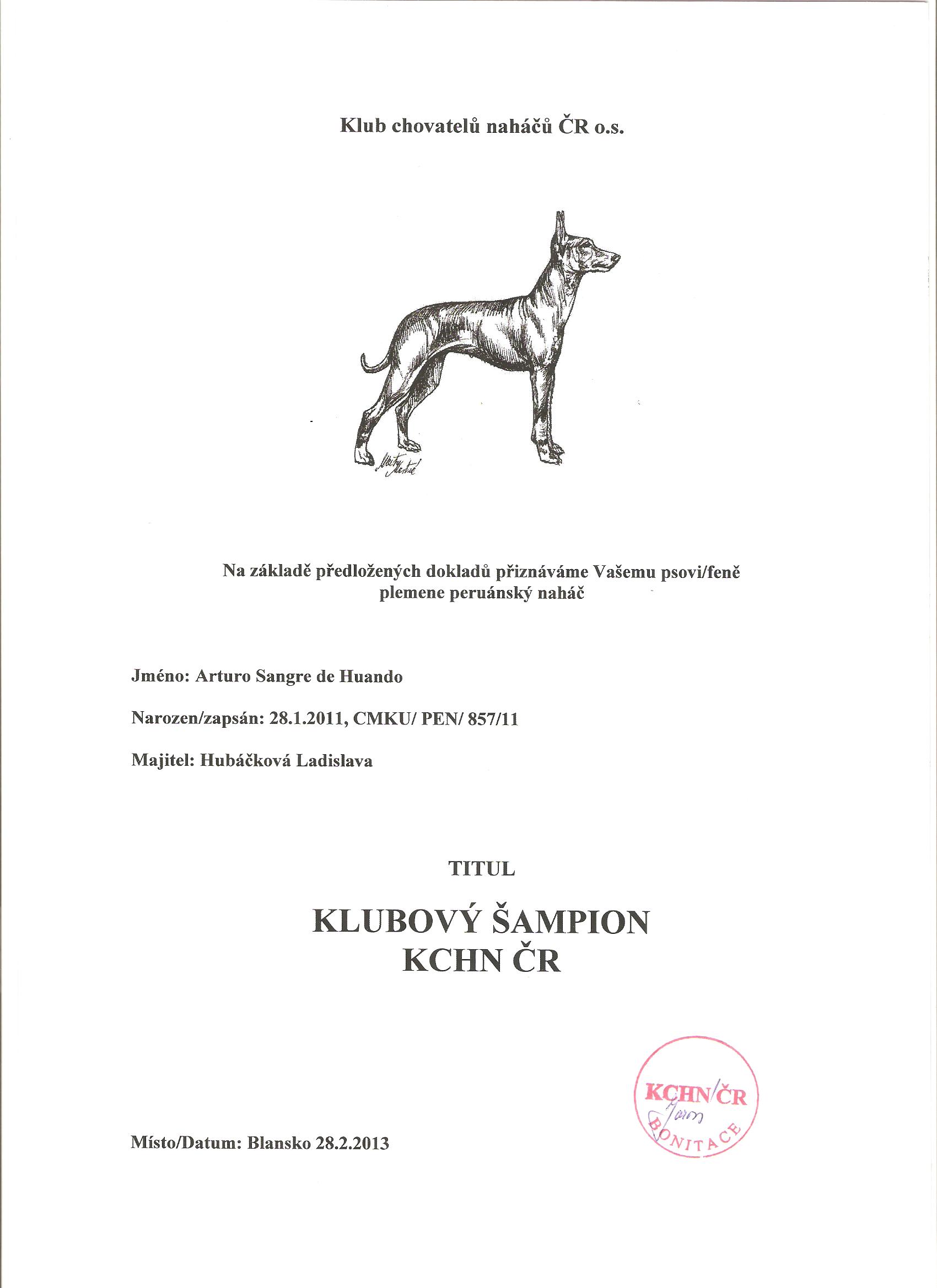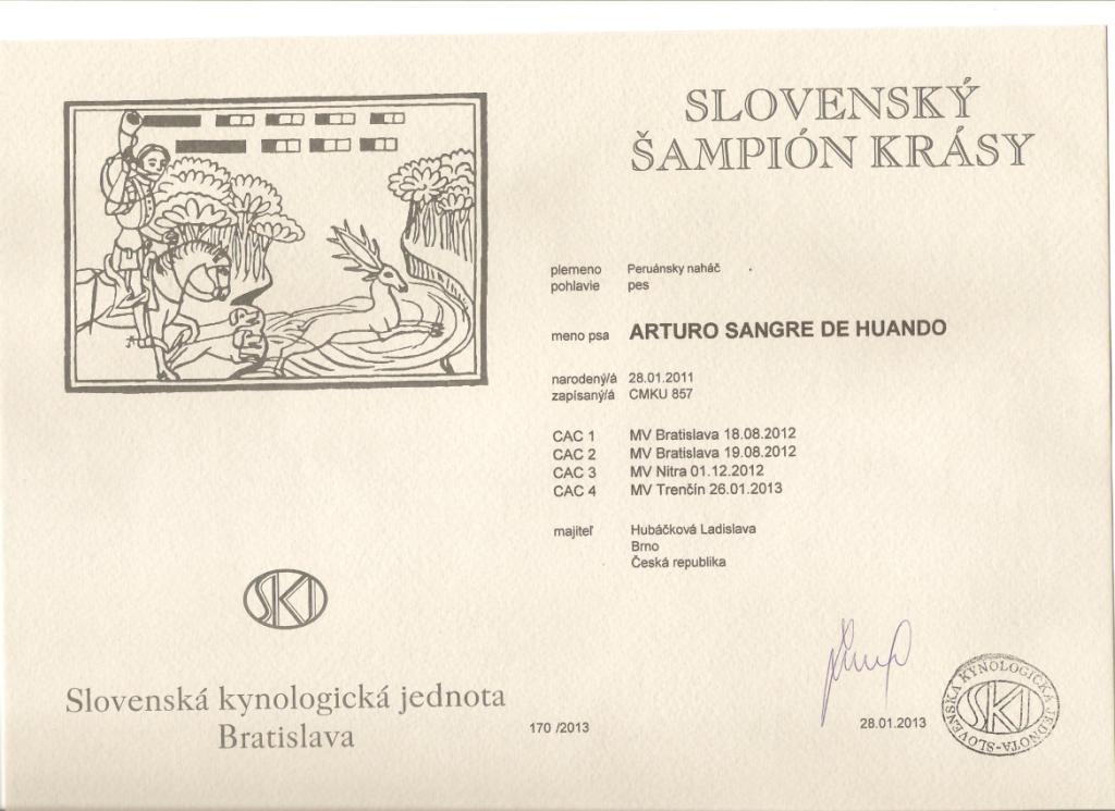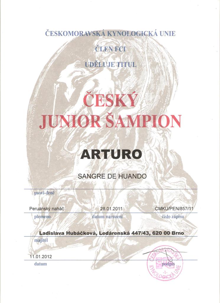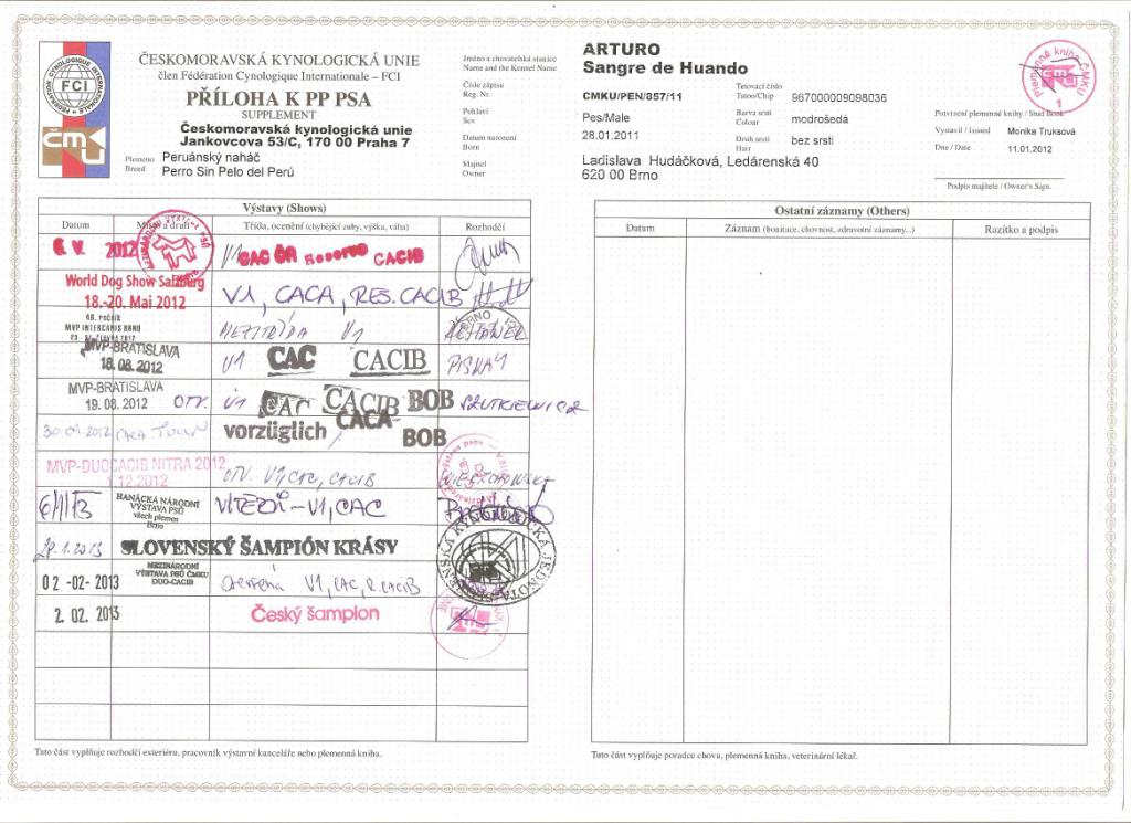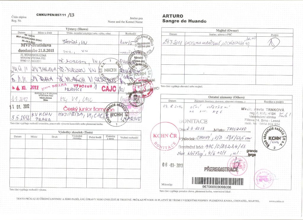 Pedigree - průkaz původu Arturo Sangre de Huando